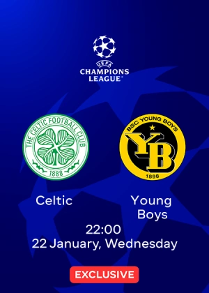 The broadcast of the Celtic vs. Young Boys Champions League match on January 22, 2025, is available with Sports, Maximal, or Maximal + Charity subscriptions. Choose any plan to access not only the match broadcast but also an extensive library of movies, TV series, animated films, 300+ TV channels with pause and recording options, including sports channels, as well as hundreds of audiobooks and podcasts.