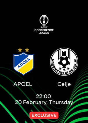 How to watch the online broadcast of the matchup on MEGOGO. The broadcast of the Conference League match APOEL vs. Celje on 20.02.2025 is available with a MEGOPACK XL, Sports, Maximal, or Maximal + Charity subscription. You can choose one of the available plans. By subscribing, viewers gain access not only to live match streams but also to a vast library of movies, series, and cartoons, over 300 TV channels with pause and recording options — including sports channels — as well as hundreds of audiobooks and podcasts.