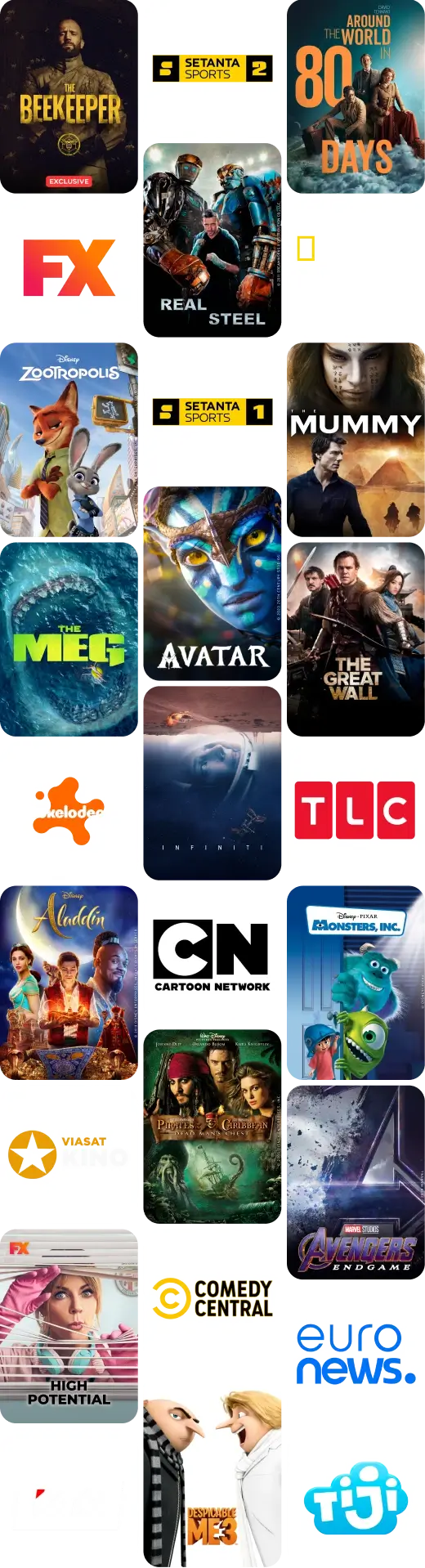 National TV shows, movies, series, globally popular programs, and children's