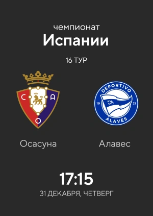 Осасуна сойдется на Эль-Садар с командой Алавес, которая успела проиграть и Сельте, 0-2, и Уэске, 0-1, и сыграть вничью с клубом Реал Сосьедад, 0-0. Для славных этот матч — возможность наладить положение в таблице, так как игра с аутсайдером не будет сложной.