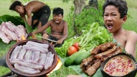 Survival in the rainforest - Primitive cooking squid recipe eating on the forest