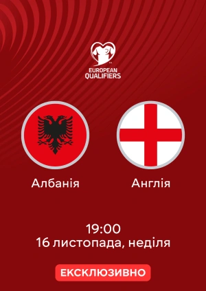 Дивитися матч Албанія — Англія 16.11.2025 онлайн на MEGOGO.
