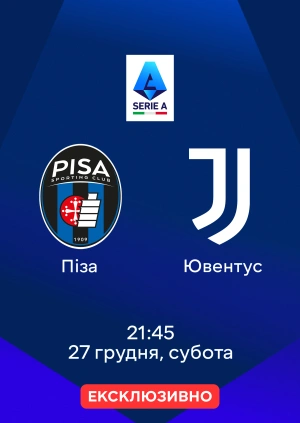 Пряму трансляцію матчу Піза — Ювентус від 27.12.2025 можна буде подивитися онлайн на MEGOGO.