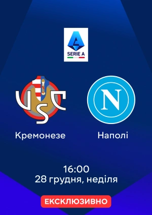 Пряму трансляцію матчу Кремонезе — Наполі від 28.12.2025 можна буде подивитися онлайн на MEGOGO.