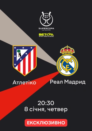 Пряму трансляцію матчу Атлетіко — Реал Мадрид від 08.01.2026 можна буде подивитися онлайн на MEGOGO.