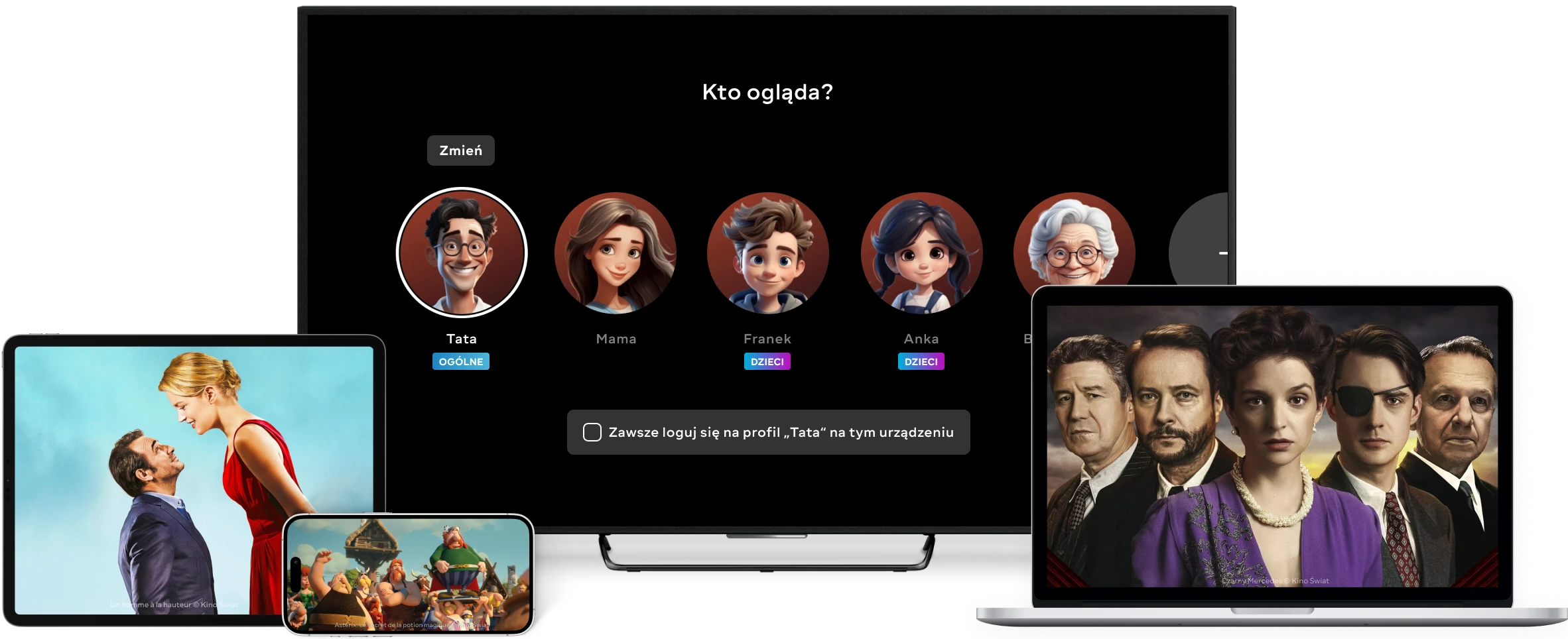 Zainstaluj aplikację na Smart TV, smartfonie i tablecie, zaloguj się do